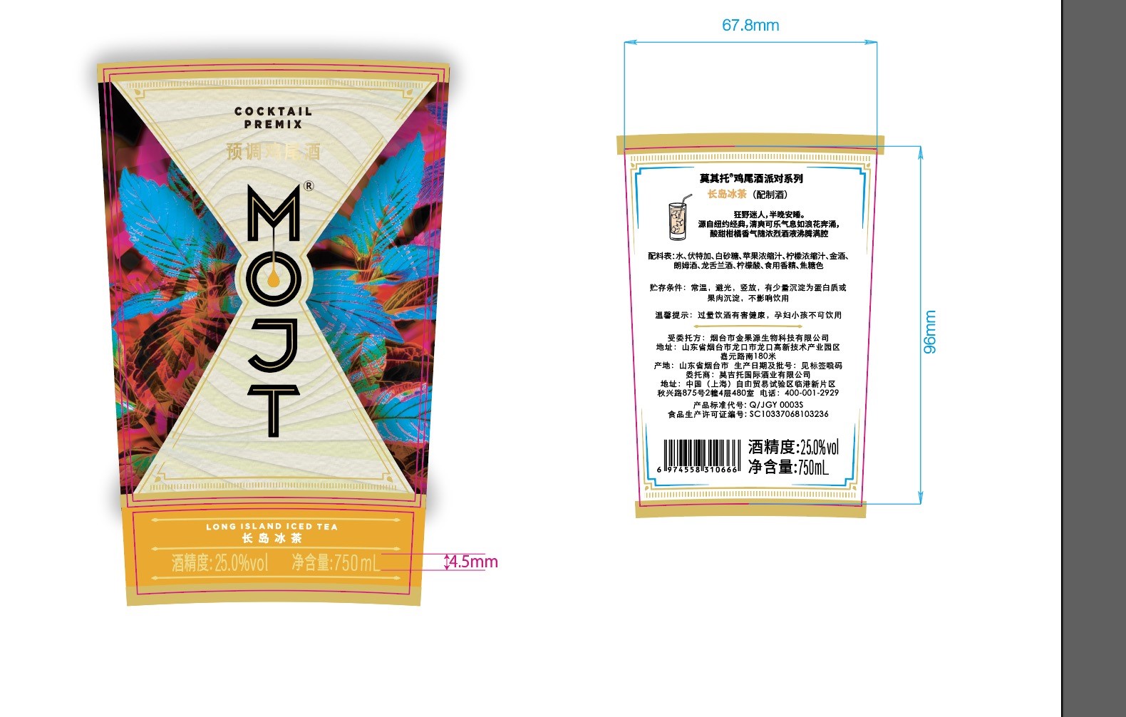 MOJT 酒是由全球知名品牌茅台集團(世界500強企業)與台灣音樂巨星周杰倫共同打造的創新產品——派對系列。該系列包含三款經典雞尾酒,包括長島冰茶、莫吉托和荔枝馬天尼。每款酒飲都擁有獨特的歷史背景與故事,並融合了東西方的調酒藝術與風味。這三款雞尾酒不僅適合夜店和派對,也可作為家中聚會的首選飲品。可以加冰塊稀釋純飲,也可以與蘇打水或各種軟飲混合飲用。長島冰茶 (Long Island Iced Tea) 以狂野迷人的氣息聞名,融合伏特加、龍舌蘭、輕型朗姆酒、琴酒等多種成分,酒液濃烈而層次豐富。详细参数品牌:莫其托(MOJT)类别:预调酒包装:瓶装单支容量:750ml酒精含量:25%
