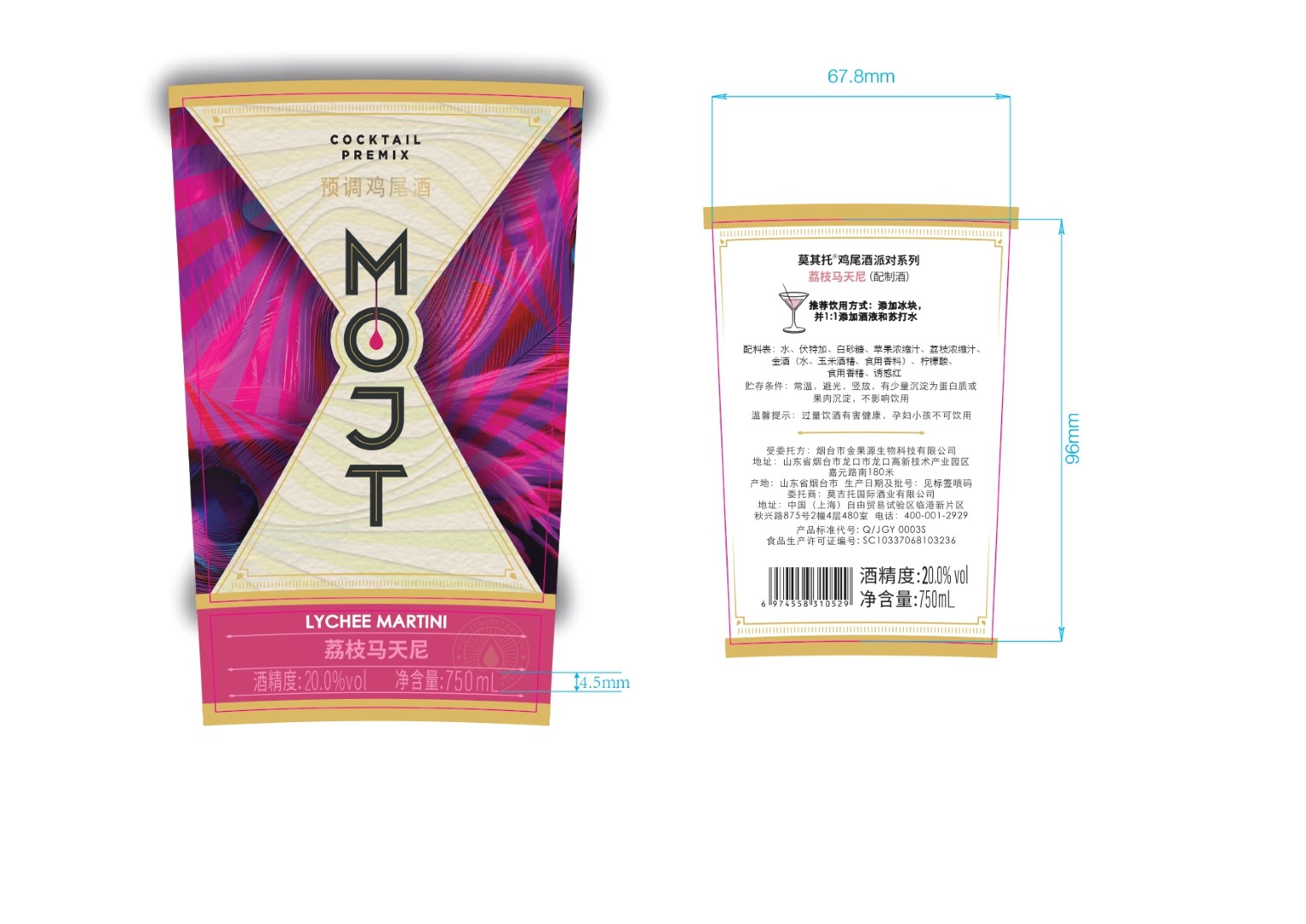 MOJT 酒是由全球知名品牌茅台集團(世界500強企業)與台灣音樂巨星周杰倫共同打造的創新產品——派對系列。該系列包含三款經典雞尾酒,包括長島冰茶、莫吉托和荔枝馬天尼。每款酒飲都擁有獨特的歷史背景與故事,並融合了東西方的調酒藝術與風味。這三款雞尾酒不僅適合夜店和派對,也可作為家中聚會的首選飲品。可以加冰塊稀釋純飲,也可以與蘇打水或各種軟飲混合飲用。荔枝馬天尼 (Lychee Martini) 結合了東方特有的荔枝香氣與西方伏特加的強烈口感,甜美而夢幻。详细参数品牌:莫其托(MOJT)类别:预调酒包装:瓶装单支容量:750ml酒精含量:20%